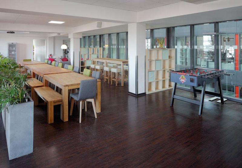 Besondere Highlights dieser Flächen sind die großen Terrassen, die eine hohe Mitarbeiterzufriedenheit geradezu garantieren, die innenliegende Treppe, die einen schnellen Austausch zwischen den Etagen 2 bis 4 ermöglicht und das sehr hippe Erscheinungsbild der denkmalgeschützten Liegenschaft kombiniert mit dem äußerst repräsentativen Atrium.