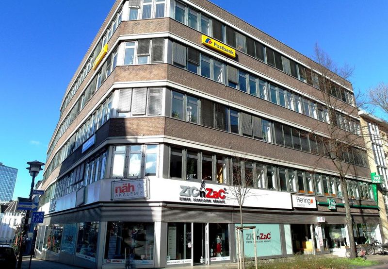 Die Büroflächen in diesem zentral gelegenen Büro- und Geschäftshaus befinden sich in einem modernen und freundlichen Zustand. Die großen Fensterfronten sorgen für lichtdurchflutete Büroräume und bieten eine hohe Visibilität. Parkplätze stehen in der hauseigenen Tiefgarage zur Anmietung bereit. Die Mieter haben die Möglichkeit sich auf einer Sammelschildanlage zu präsentieren.