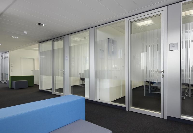 • Raumaufteilung mit Glassystemtrennwänden zum Flur