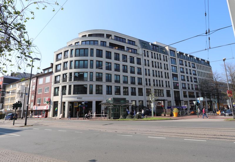 „Rü62“ ist ein einzigartiges Projekt in bester Lage von Essen-Rüttenscheid. Der Anspruch der Bauherren – ein hochwertiges Gebäude zu errichten – wurde mit dieser klassischen und gleichzeitig exklusiven Immobilie erfüllt. Der Neubau aus den Jahr 2011 besteht optisch aus vier Häusern, welche die markante Ecke Rüttenscheider Straße / Zweigertstraße aufwerten. Auf sieben Geschossen zur Rüttenscheider Straße und drei Geschossen zum Innenhof erstrecken sich im Basement und Erdgeschoss die Einzelhandelsflächen sowie im Obergeschoss die Büroflächen. Im Basement befindet sich EDEKA, im Erdgeschoss konnte neben Deichmann auch ein dm Drogeriemarkt, sowie ALDI als Mieter gewonnen werden. Die Sandsteinfassade bzw. die sandsteinfarbige Fassade unterstreicht die schlichte Eleganz des Gebäudes. Als ein weiteres Highlight gilt der begrünte Dachgarten. Der Bürozugang ist durch ein hoch attraktives, überdurchschnittlich breites, wertig ausgestattetes Treppenhaus mit zwei Aufzügen von der Rüttenscheider Straße sichergestellt. Beschilderungsanlagen weisen auf die Mieter hin. Ein weiterer Bestandteil des Gebäudekomplexes ist das Parkhaus an der Bertoldstraße, welches neu gebaut wurde und über ca. 280 Stellplätze verfügt. Zu jeder Mieteinheit können Stellplätze angemietet werden. Durch dieses hohe Parkplatzkontingent steht den Mietern und deren Besuchern, selbst in dieser so stark frequentierten Lage, ausreichend Parkraum zur Verfügung.