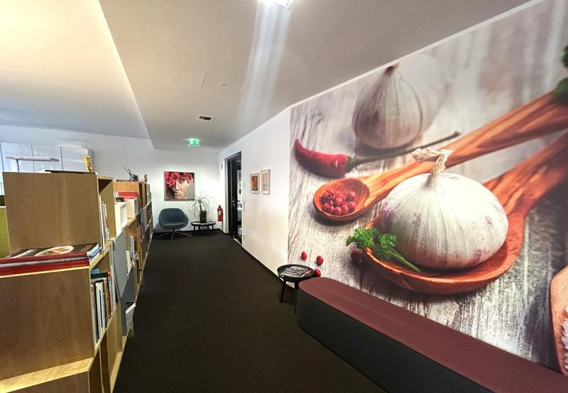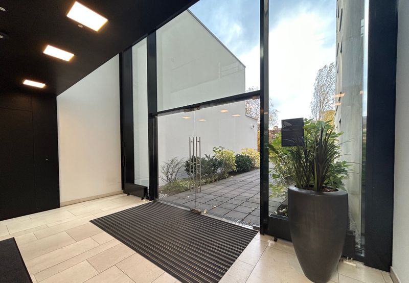 Die Büroräumlichkeiten überzeugen durch ihre Exklusivität und Hochwertigkeit. Bei der Gestaltung der Büros wurden ausschließlich erstklassige Materialen verwendet, welche sämtliche Anforderungen an ein modernes Büro erfüllen. Neben einem antistatischen Teppichboden, einer EDV-Verkabelung im CAT-7 Standard, welche über Bodentanks zugänglich ist, ist ein außenliegender, elektrisch zu betreibender Blend- und Sonnenschutz eine Selbstverständlichkeit. Moderne Stehleuchten in den Büroräumen und Einbau- bzw. Aufbaudownlights in den Flurbereichen spenden dem Büro ein angenehmes Licht. Durch die Betonkernaktivierung werden die Räumlichkeiten angenehm und ohne Zugerscheinungen gekühlt. Desweiteren ist die Betonkernaktivierung im wirtschaftlichen Vergleich zu einer herkömmlichen Klimaanlage deutlich effizienter. Außerdem führt eine Glasfaserleitung zu dem Objekt. Die Besprechungsräume werden mit einer Akustikdecke, Downlights sowie mit einer mechanischen Be- und Entlüftung mit einem 6-fachen Luftwechsel ausgestattet. Selbstverständlich sind die Teeküchen (Kühlschrank, Spülmaschine, Mikrowelle) und Sanitäranlagen, diese getrennt für Damen und Herren, ebenfalls äußerst hochwertig ausgestattet.
