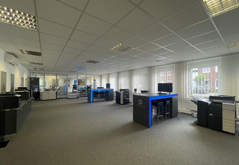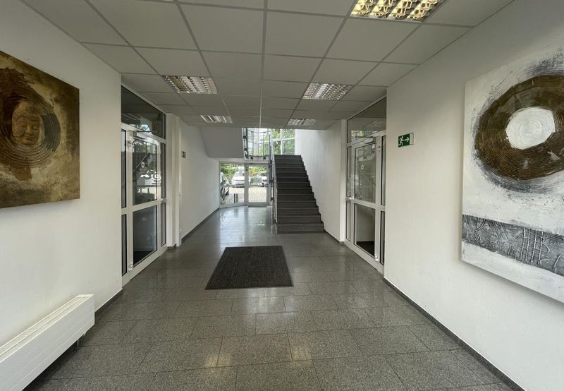 Dieses im Jahre 1992 errichtete Bürogebäude besticht durch seine klare Architektur. Bei der Fassade wurde großer Wert auf eine ansprechende Optik gelegt. So wurde bei der Fassadengestaltung im Wechsel mit Wärmedämmputz in weißem Anstrich und hinter lüftendem Klinkerblender gearbeitet. Die vakante Bürofläche mit einer Größe von ca. 481 m² befindet sich im Erdgeschoss.