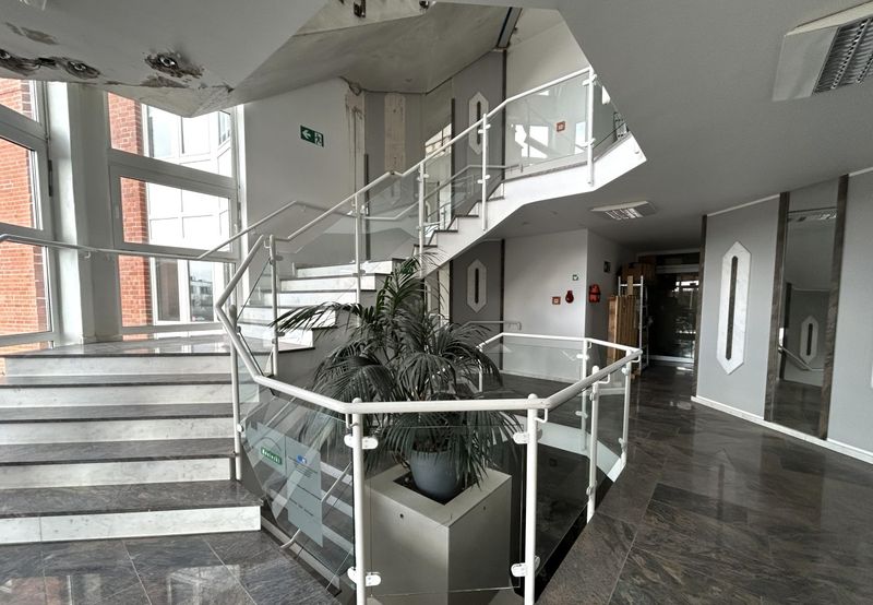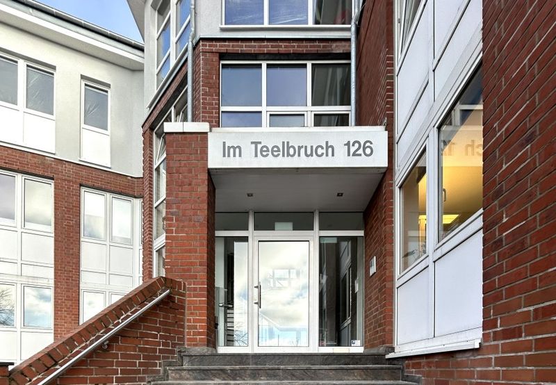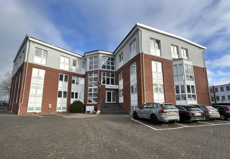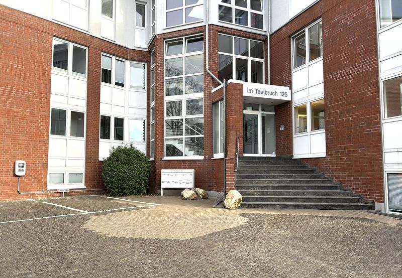Das Bürogebäude wurde 1991 errichtet und im Jahr 2025 umfassend modernisiert. Es handelt sich um ein ansprechendes Ziegelbauwerk, das sich zum Grundstück hin auf einen großzügigen Innenhof öffnet. Bereits beim Betreten des Gebäudes vermittelt die helle Eingangshalle mit gläserner Dachkonstruktion einen freundlichen und professionellen ersten Eindruck.