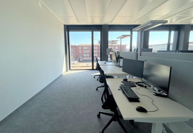 Auf 5,5 Büroetagen entstehen insgesamt rund 8.500 m² Mietfläche. Die Flächen mit einer Gesamtgröße von ca. 720 m² lassen eine hochflexible Anpassungsfähigkeit an individuelle Nutzerbedürfnisse an diesem verkehrstechnisch herausragenden und hochvisiblen Standort in Duisburg zu. Dabei können Nutzungen wie Großraumbüros, Bürolandschaften, Kombi und -Teambüros mit Meeting Zonen ebenso selbstverständlich angeboten werden, wie klassische Einzelbüros.