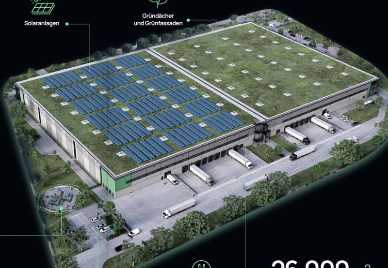 verbessert die Erreichbarkeit zusätzlich. Solarpaneele und Wärmepumpen unterstützen die nachhaltige Energieversorgung, während ebenerdige Tore und ein großzügiger Tiefhof für optimale Funktionalität