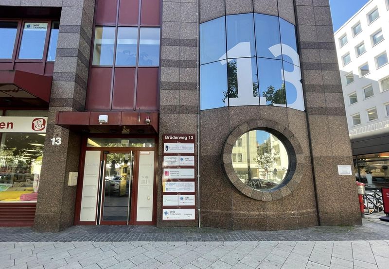Das repräsentative, sechsgeschossige Geschäfts-, Büro- und Praxisgebäude wird durch einen Erschließungskern im Eckbereich Brüderweg/Moritzgasse erschlossen. Der Ein-gangsbereich verfügt über zwei Personenaufzüge sowie über ein offenes und durch den Einsatz von viel Glas auch helles Treppenhaus. Der Gebäudezugang ist zudem barrierefrei. In der objekteigenen Tiefgarage befinden sich insgesamt 82 PKW-Stellplätze.