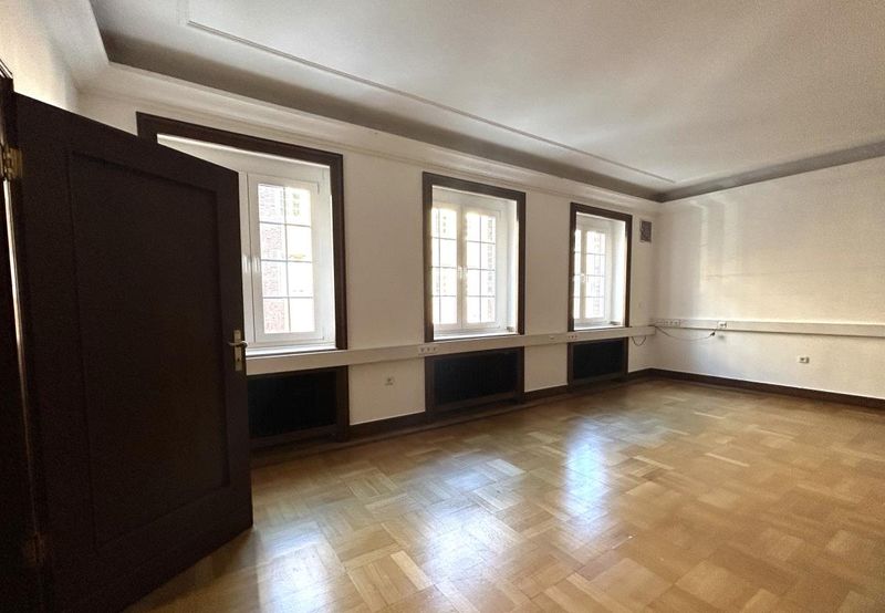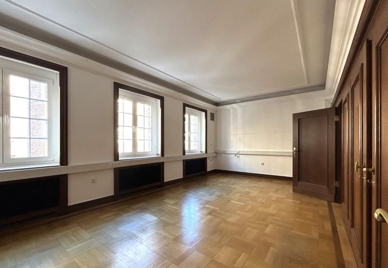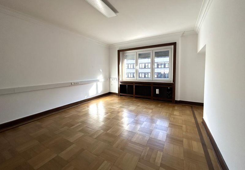 Das im Jahr 1949 erbaute Bürohaus überzeugt durch seinen einzigartigen Charme und eine gelungene Verbindung aus klassischer Architektur und moderner Ausstattung. Stilvolle Stuckdecken und antike Verkleidungen an den Heizkörpern verleihen den Räumen einen repräsentativen, historischen Charakter. Gleichzeitig sorgen moderne Beleuchtungselemente für eine zeitgemäße Arbeitsatmosphäre. Der hochwertige Parkettboden unterstreicht die elegante Ausstrahlung des Gebäudes und bietet zugleich hohen Komfort. Diese besondere Kombination aus Tradition und Moderne macht das Objekt zu einem idealen Standort für Unternehmen, die Wert auf Stil und Individualität legen.