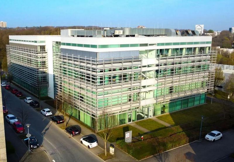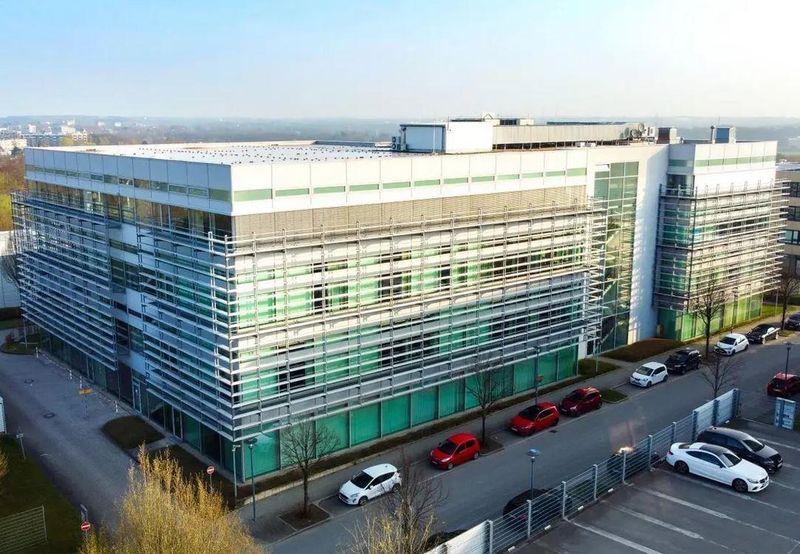 Das Gebäude wurde 2002 erbaut und verfügt über den modernsten Stand der Technik. Mitarbeitende und Kunden können im objekteigenen Parkhaus oder auf den Stellplätzen vor dem Gebäude parken und gelangen über den hellen Empfangsbereich in das Gebäude.
