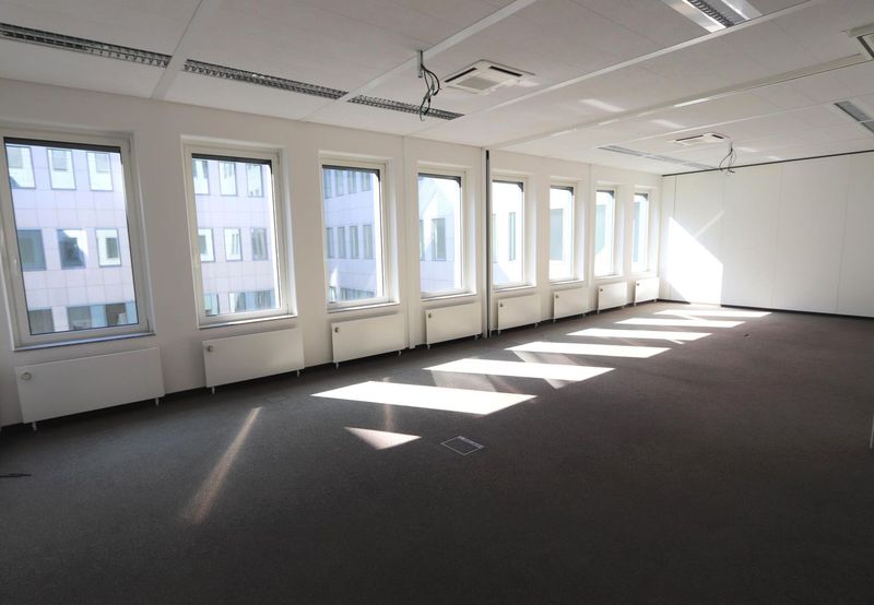 Das umbaufähige Trennwandsystem ermöglicht unterschiedlichste Grundrissformen, sodass die Immobilie sowohl für kleine, als auch für große Unternehmen interessant ist.
