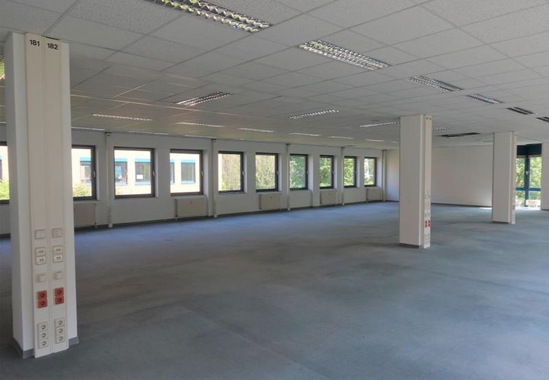 – Beleuchtung: Rastereinbauleuchten in den Büroräumen und Flurbereichen