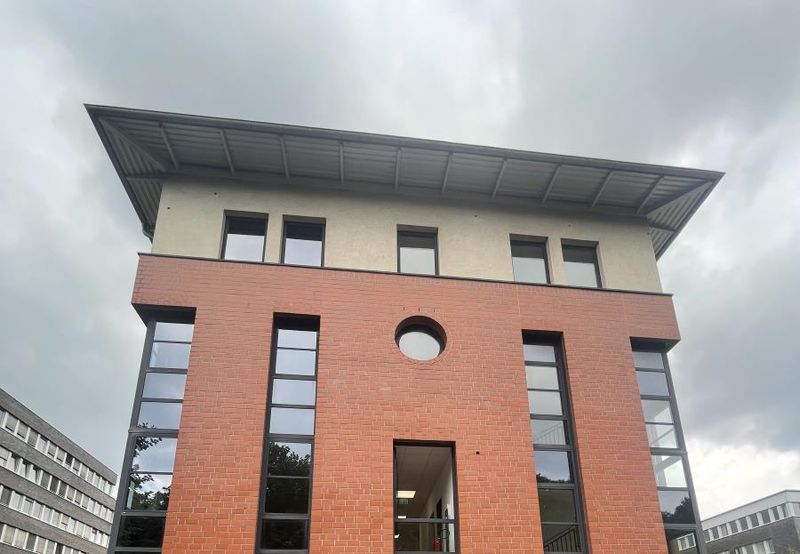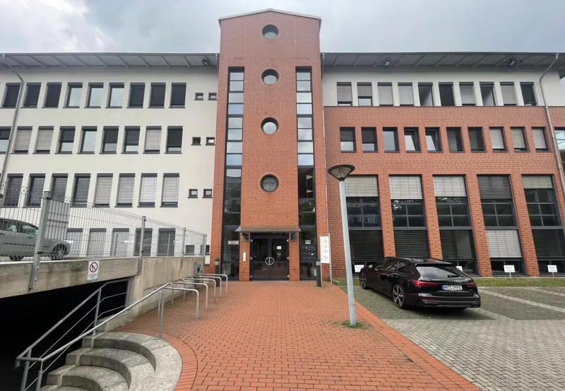 Das attraktive Bürogebäude wurde 1996 erbaut und befindet sich im Trimontepark. Eine moderne Außenfassade mit Ziegel-, Stahl und Glaselementen machen das Objekt zu einem Standort mit Qualität. Über den repräsentativen Eingangsbereich erreichen Sie die Fläche im 1. Obergeschoss, welche 2019 kernsaniert wurde, entweder barrierefrei über den Aufzug oder durch das Treppenhaus.