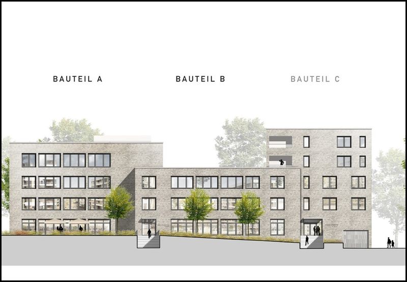 Auf dem Grundstück des ehemaligen Klostergartens in Bochum wird in städtebaulicher Verlängerung zur Bestandsbebauung ein Gebäude aus 3 Gebäudeteilen (A, B und C) inklusive Tiefgarage entstehen, welches zukünftig eine Vielzahl an Funktionen und Nutzungen des St. Vinzenz e. V. aufnehmen wird. Es geht um mehr als nur den Bau eines Gebäudes. Es wird der Grundstein für ein Bauvorhaben gesetzt, welches nicht nur architektonisch, sondern auch gesellschaftlich Wirkung entfalten soll. Im Gebäude am Ring entstehen Praxis-/Büroflächen, eine Pflege- und Beratungseinrichtung, Räumlichkeiten für Workshops und Schulungen, Jugendwohngruppen und Trainingswohnungen für junge Erwachsene sowie ein Veranstaltungszentrum.