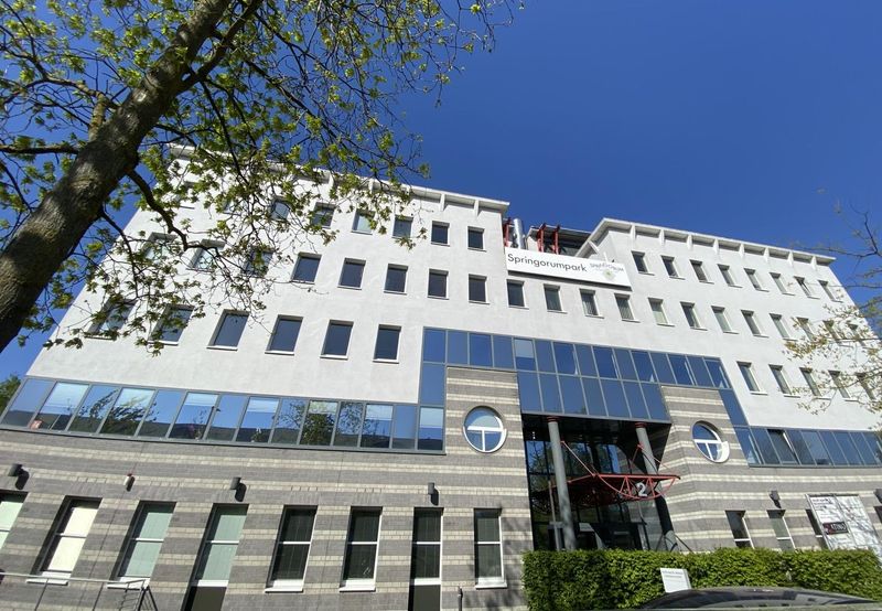 Der 5-geschossige Baukörper mit seinem unverwechselbaren Erscheinungsbild verfügt zusätzlich über ein Staffelgeschoß sowie ein Kellergeschoß, welches als offene Tiefgarage 50 Doppelparkerstellplätze beinhaltet. Diesem überdeckten Parkbereich sind weitere 22 offene Stellplätze vorgelagert, die von der Springorumallee anfahrbar sind. Das Bürogebäude ist in 12 jeweils separat vermietbare Bürobereiche (Halbetagen) unterteilt. Die einzelnen