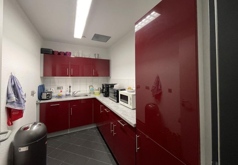 Die Ausstattung entspricht modernen Büroanforderungen mit einem neuen Teppichboden, arbeitsplatzgerechter Beleuchtung und Raufasertapete. Kabelkanäle und zur Integration der EDV- und Telefonverkabelung sind installiert, eine vollständige CAT-5 Verkabelung ist in der Fläche vorhanden.
