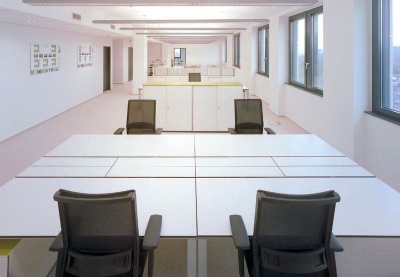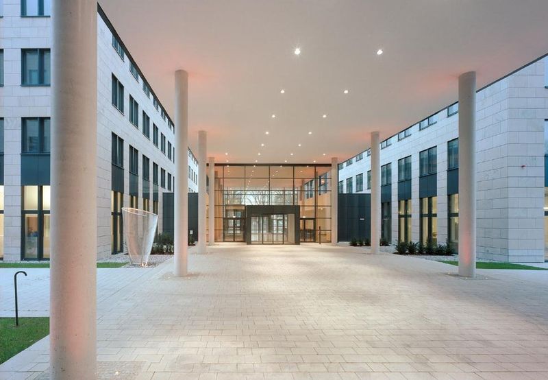 In dem dreiteiligen Gebäudeensemble fungiert der 22-geschossige „Tower“ mit solitärem Charakter als Landmarke direkt am Standeingang. In westlicher Richtung schließt das viergeschossige U-förmige „Atrium“ an, im Süden das L-förmige „Forum“ mit sechs Geschossen. Beide sind über die repräsentative Eingangshalle mit dem „Tower“ verbunden. Ihre Kunden erreichen von der objekteigenen Tiefgarage (452 Stellplätze) bequem mit dem Glasaufzug den besetzten Empfang.